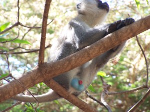 Though important on our agenda, the elephants were upstaged by the next sight, a vervet or blue-balled monkey. No further comments.