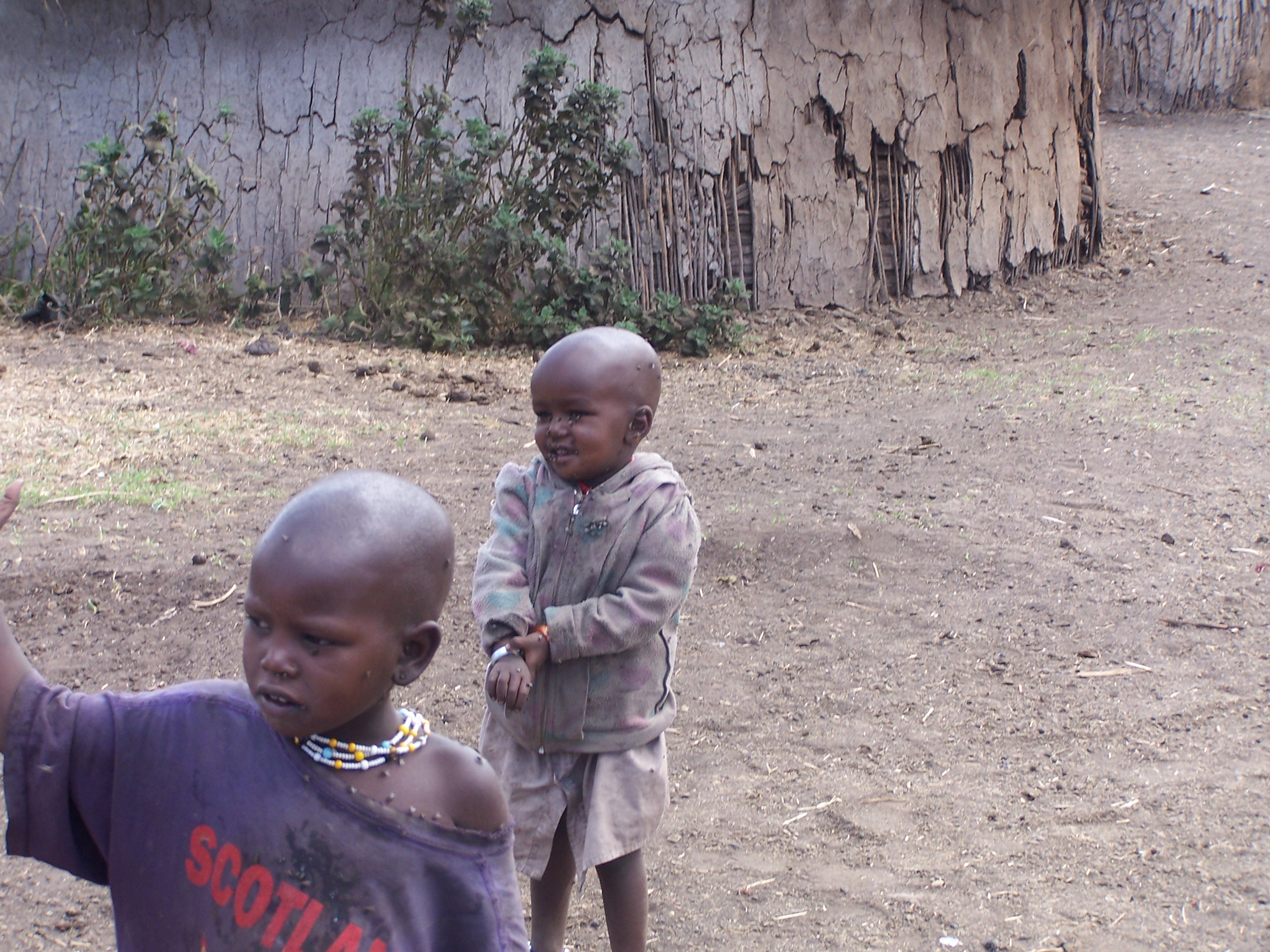 Following the tribal dance the chief led us to his Boma or compound. Children, flies all over them and around their mouths, ran out to meet us.