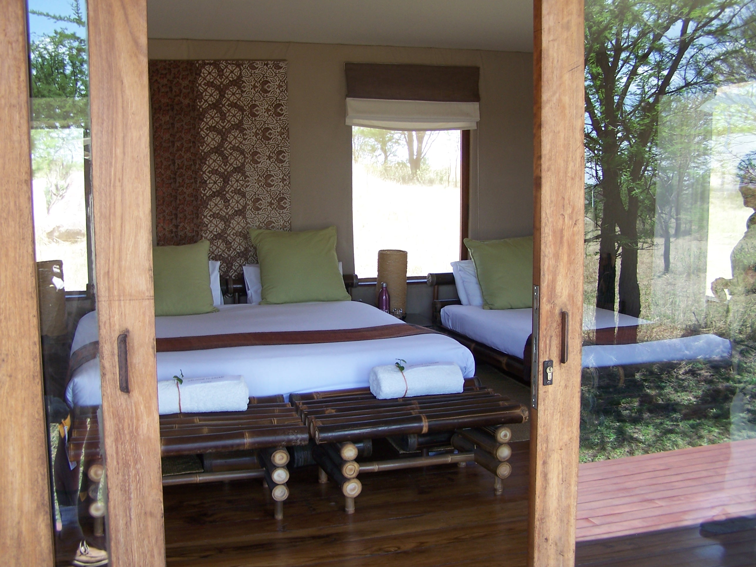 We arrived in the Sayari Camp around noon, were given a briefing by Kathryn and Ross, the managers of the camp. The upscale tents, with wooden floors, showers, toilet, electricity and wi-fi, stretched either side of the dining room and main social room. We were in #5.