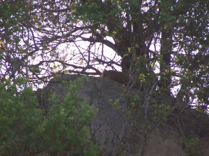 Surprise: a male leopard with 2 cubs. We had a good view of the leopard but never saw the cubs. Our driver positioned our vehicle for good photo shots.