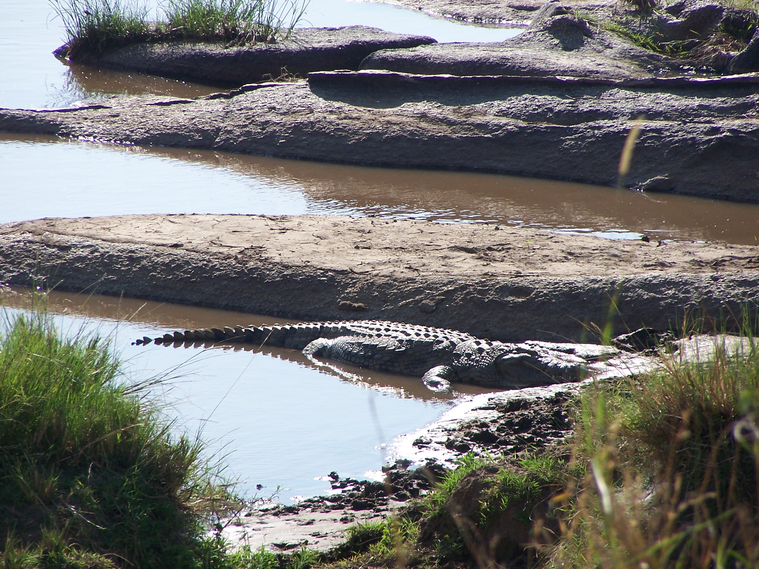 On the way to the airport, he gave us a final safari along the shores of the Mara River. We saw huge crocodiles sunbathing,